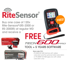 RITE-SENSOR case of 120 w/Free Tech600PRO - 12 sleeves of 10 boxed sensors w/Rubber valve stem and optional metal valve stem (red box).
