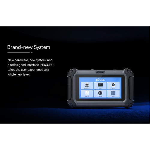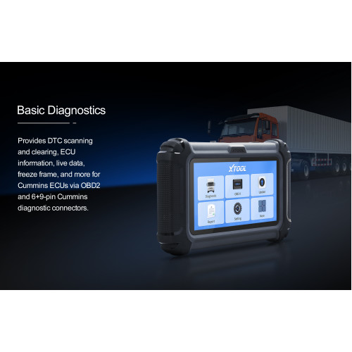 HDGURU is XTOOL's first entry-level heavy-duty vehicle diagnostic tool, featuring a streamlined Linux system and a 5.45-inch display, ideal for small fleet mechanics. It supports comprehensive Cummins ECU and HD OBD2 generic diagnostics, offering code scanning and clearing, live data monitoring, and detailed ECU information. With over 60 bi-directional tests, 35+ Cummins Dedicated functions, and advanced feature and parameter programming across 45+ applications, HDGURU delivers professional-grade diagnostics in a compact, easy-to-use device.
