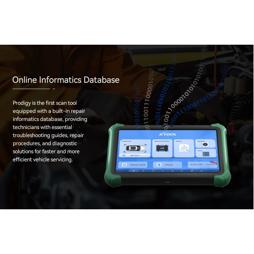 Prodigy is a high-performance automotive diagnostic tool featuring a 13.3-inch touchscreen, Android 10.0, and advanced communication protocols (DoIP/CAN FD). Designed for electric, gasoline, and hybrid vehicles across global markets, it offers fast diagnostics, 50+ reset and relearn functions, ADAS calibration, and seamless ECU programming. With topology mapping and enhanced diagnostic reports, Prodigy ensures precise and efficient troubleshooting for professionals.